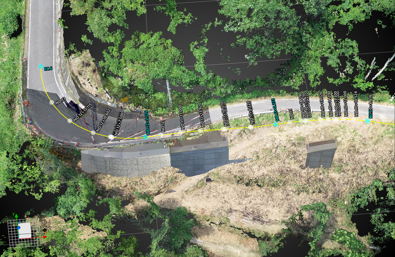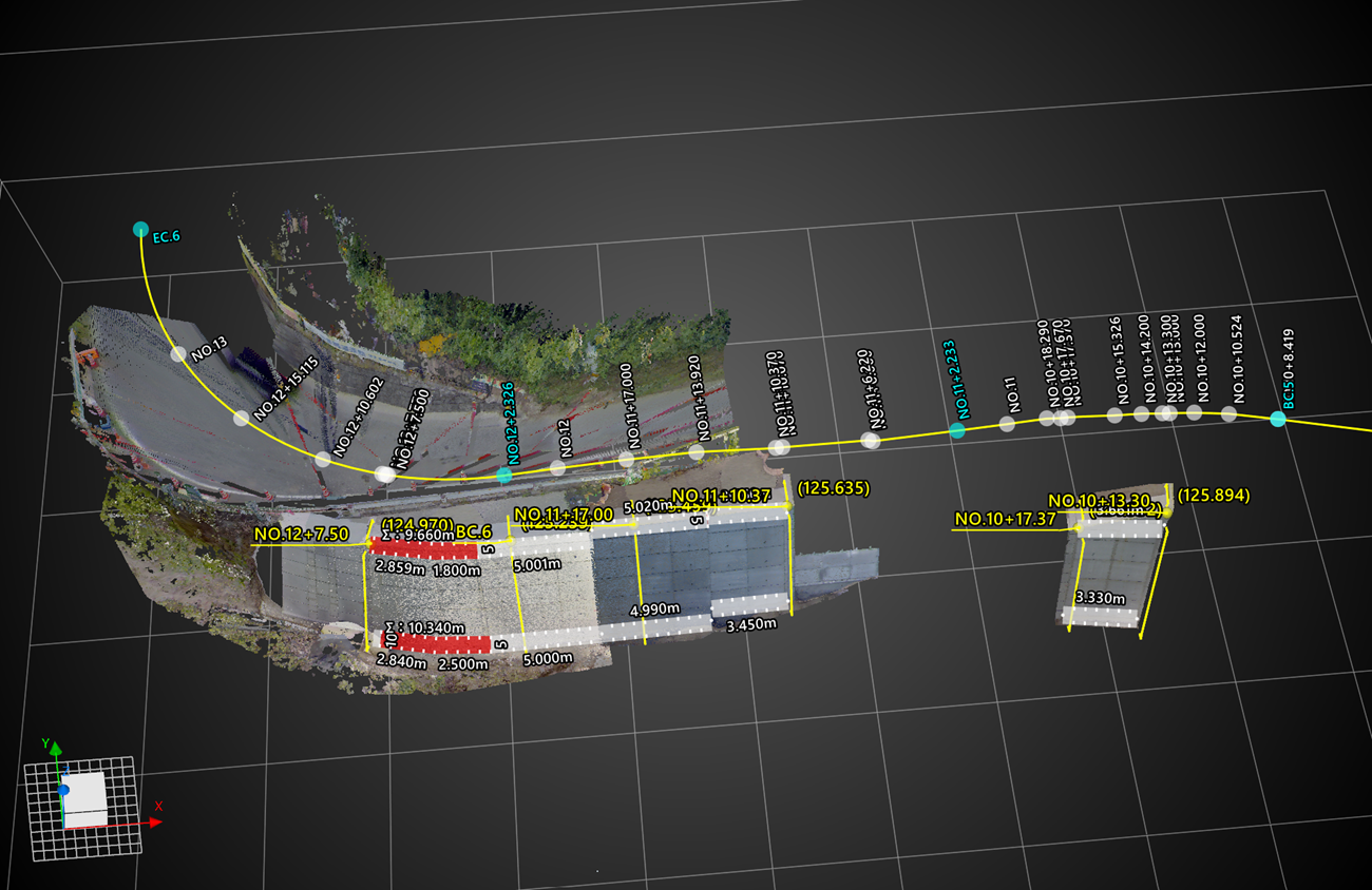 出来形計測にて取得した点群データを使用し、出来形管理を行います。
